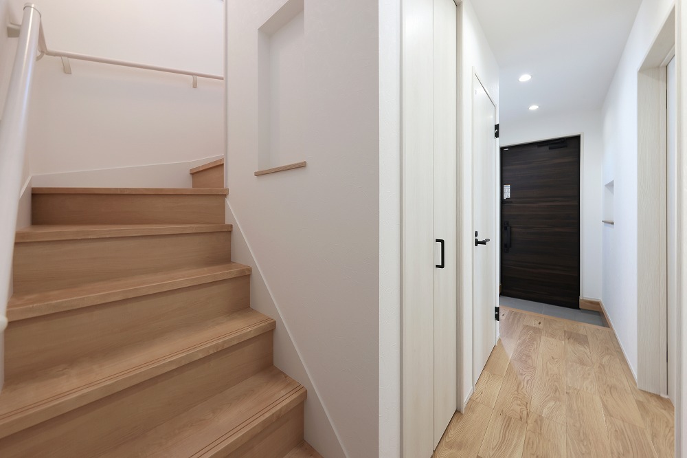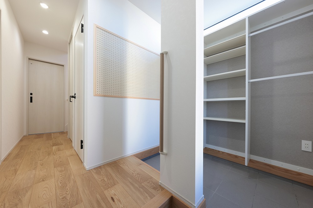 家事導線を重視した設計で、日々の暮らしが楽になるよう工夫された住まい。外観は黒い外壁で統一され、モダンでシックな印象を与えます。玄関には広々とした土間収納を設け、家族の外出時や帰宅時に便利なスペースを確保。子供部屋は、将来のライフステージに合わせて2部屋に分けられる設計で、柔軟な家族の成長に対応します。さらに、太陽光発電を搭載し、エコで経済的な暮らしを実現する、家族のライフスタイルにぴったりの住まいです。