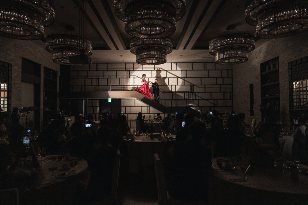 披露宴会場もすごく雰囲気が良くて、階段入場のシルエットも素敵だなと思ったのがきっかけでした。